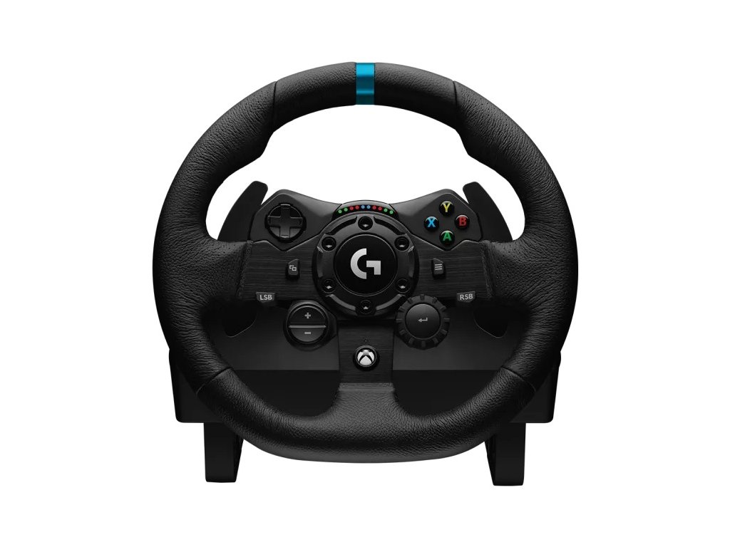 Logitech G923 TRUEFORCE Sim Racing Wheel * ovládací prvky pro Xbox Series X|S, Xbox One jsou integrovány přímo do volantu * volant z ručně šité kůže * integrované barevné indikátory LED označují rozsah otáček v podporovaných hrách * brzdový systém * pedály z válcované oceli