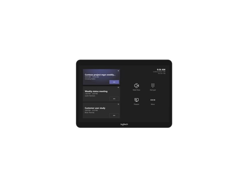Videokonferenční řešení pro místnosti poskytují ve spojení s ovladačem Logitech Tap funkce integrace kalendáře, připojení ke konferenci jedním dotykem, okamžité sdílení obsahu a stálou připravenost k akci. Řešení pro místnosti Logitech, již z výroby vybavené optimalizovaným softwarem pro místnosti od Google, Microsoft nebo Zoom, zahrnují všechny potřebné součásti: dotykový ovladač Tap, počítač v kompaktním provedení, kabeláž certifikovaná pro tažení stěnou a konferenční kamera Logitech MeetUp nebo Rally.