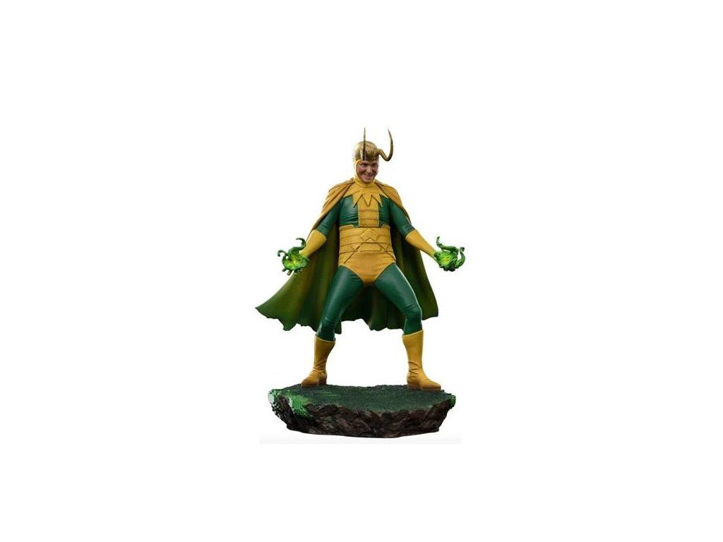 Loki stojí na podstavci v zeleno-žltom trikote, žltom plášti a zlatej prilbe s rohmi. S odvážnym úsmevom na tvári prináša Iron Studios sošku "Classic Loki Variant - Loki - Art Scale 1/10", ktorá predstavuje Thorovho nebojácneho adoptívneho brata, inšpirovaného jeho klasickou verziou v komiksoch, prezentovanou v seriáli Loki od streamovacej služby Disney+.