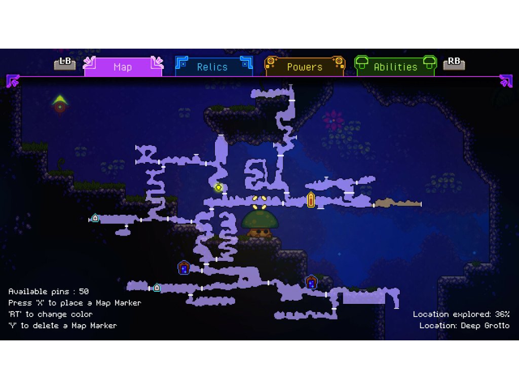 Lone Fungus is essentially a precision platformer, but it doesn't compel you to undertake overly difficult platforming tasks in order to advance in the game. Instead, all the platforming challenges are confined to optional side rooms, allowing you to relish the game as a Metroidvania-style adventure game focused on combat and exploration, while still benefiting from the precise controls of a precision platformer. However, if you're inclined to master the game's hardcore mechanics, there are practice rooms available for you to refine your skills and take on the most daunting platforming challenges that the game has to offer.