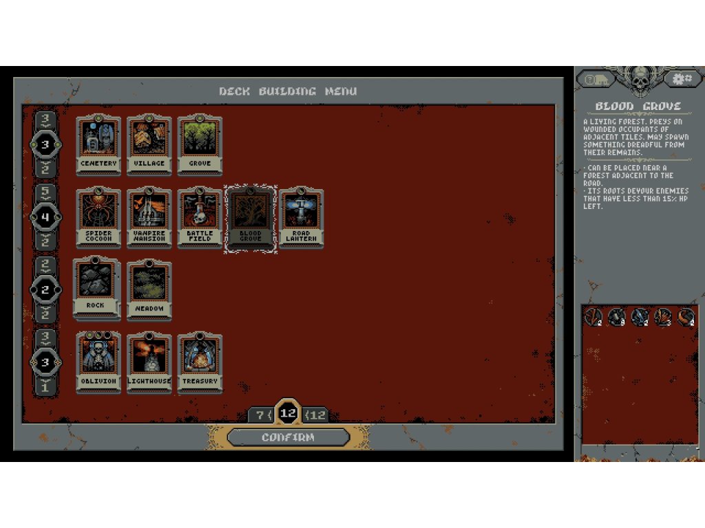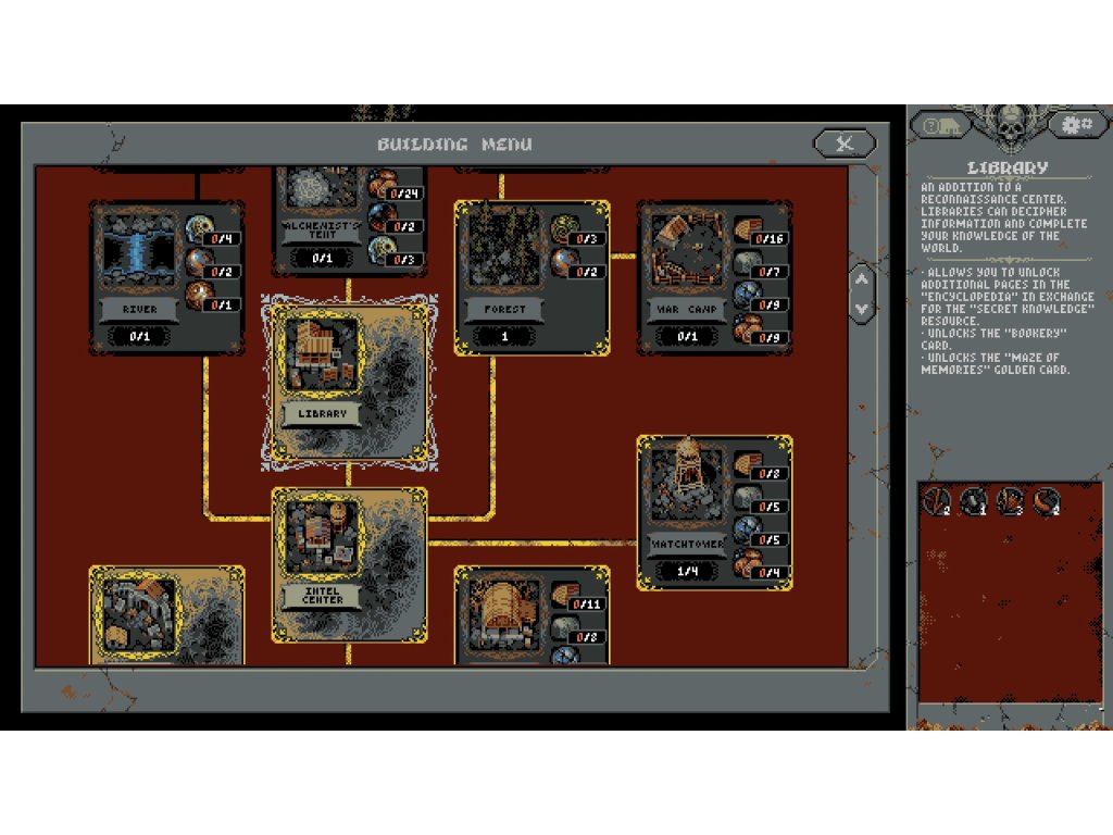 - Plan Your Struggle: Strategically place building, terrain, and enemy cards along each loop to create your own dangerous path. Find balance between the cards to increase your chances of survival while recovering valuable loot and resources for your camp.
