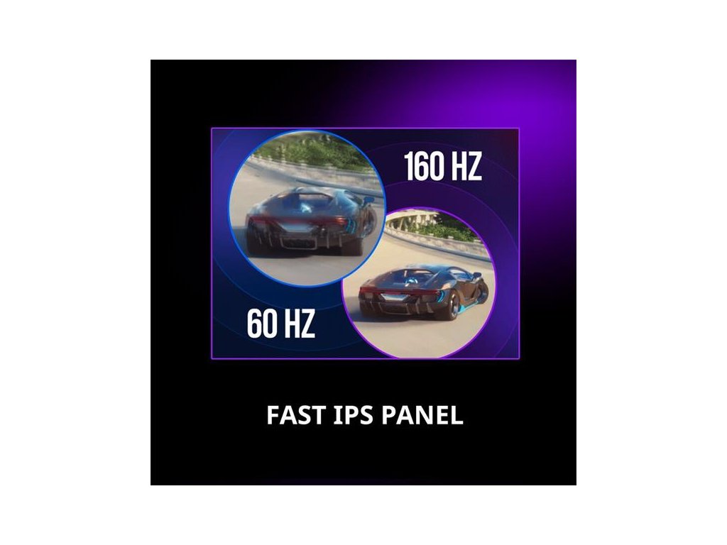 Panel Fast IPS monitora ponúka rýchlu obnovovaciu frekvenciu pri 160 Hz a minimálny input lag, čo zaisťuje plynulé hranie bez trhania. S dobou odozvy 1 ms môžete rýchlo reagovať na akciu na obrazovke a vychutnať si citlivejší herný zážitok.