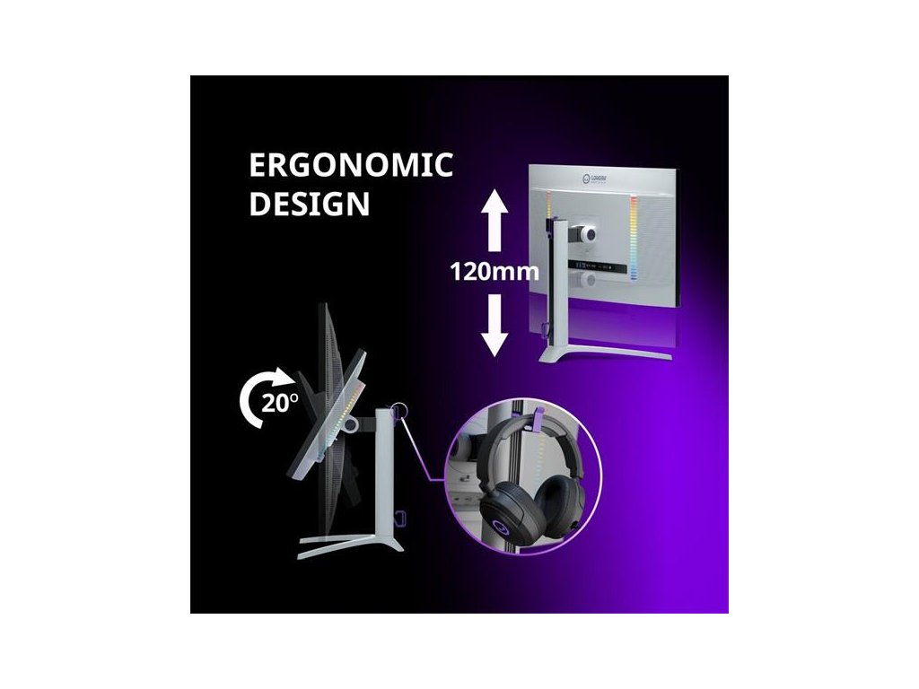 Plne nastaviteľný stojan poskytuje maximálny komfort a flexibilitu. Monitor môžete jednoducho nakláňať a otáčať o 90 stupňov a upravovať jeho výšku tak, aby ste našli ideálnu polohu pre sledovanie. Už žiadne namáhanie očí a únava počas dlhých herných sedení! Vstavaný držiak na slúchadlá a vyhradený háčik na usporiadanie káblov tiež pomáhajú udržiavať vaše herné nastavenie organizované a bez chaosu.