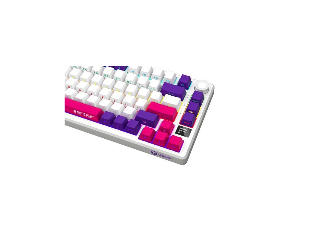 Lorgar KBP7075, Pro bezdrôtová mechanická herná klávesnica, Wireless 2.4 GHz/ BT 5.0, 75% , Displ., SK/CZ layout, biela