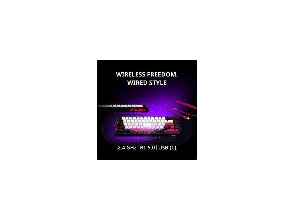 Herná klávesnica KBP70MW ponúka profesionálny bezdrôtový výkon s pripojením cez 2.4 GHz a BT 5.0. Je vybavená prémiovými mechanickými spínačmi s odolnosťou až 50 miliónov stlačení a dizajnom typu „gasket mount“, ktorý zaručuje dokonalý pocit z písania. 66-klávesové rozloženie poskytuje základné funkcie v kompaktnom formáte.Ďalšie funkcie zahŕňajú:
