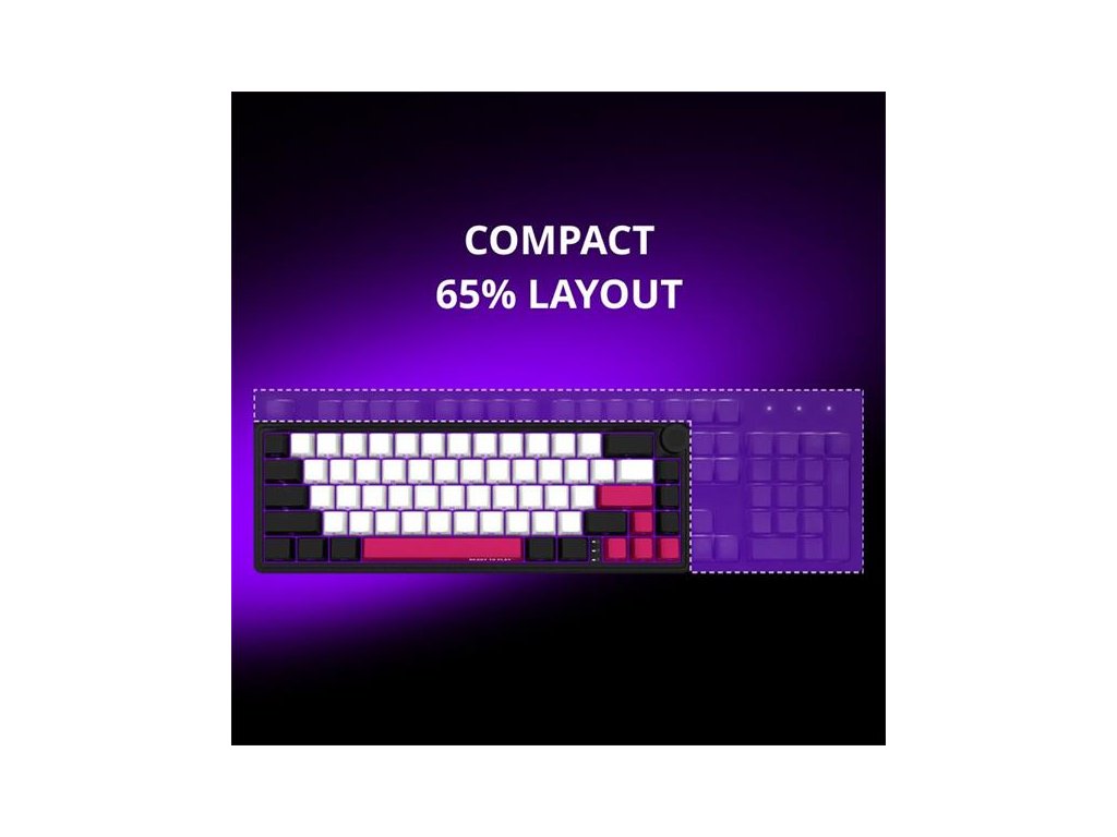 Herná klávesnica KBP70MW ponúka profesionálny bezdrôtový výkon s pripojením cez 2.4 GHz a BT 5.0. Je vybavená prémiovými mechanickými spínačmi s odolnosťou až 50 miliónov stlačení a dizajnom typu „gasket mount“, ktorý zaručuje dokonalý pocit z písania. 66-klávesové rozloženie poskytuje základné funkcie v kompaktnom formáte.Ďalšie funkcie zahŕňajú:
