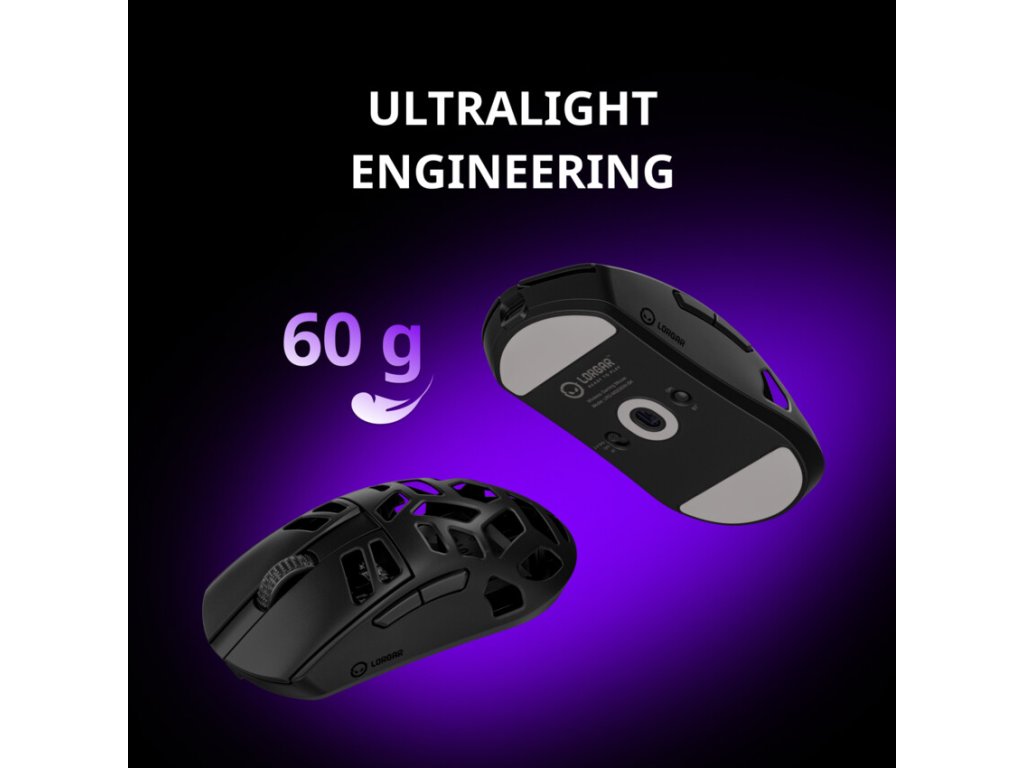 S hmotnosťou iba 60 g a dostupnosťou v čiernej, bielej a striebornošedej povrchovej úprave poskytuje výkon na profesionálnej úrovni, zatiaľ čo nožičky z panenského PTFE zaisťujú plynulý a presný pohyb po akomkoľvek povrchu.