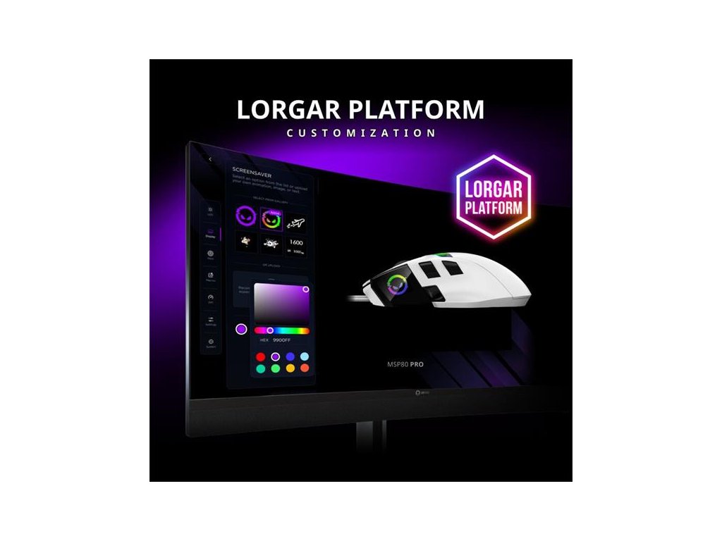 Prémiová značka herného príslušenstva LORGAR s vastnou aplikáciou Lorgar Platform pre customizáciu každého produktu!!!Ergonomický dizajn obsahuje 8 programovateľných tlačidiel, integrovaný displej RGB a rozsiahlu zónu osvetlenia RGB. K dispozícii je v čiernej alebo bielej farbe.
