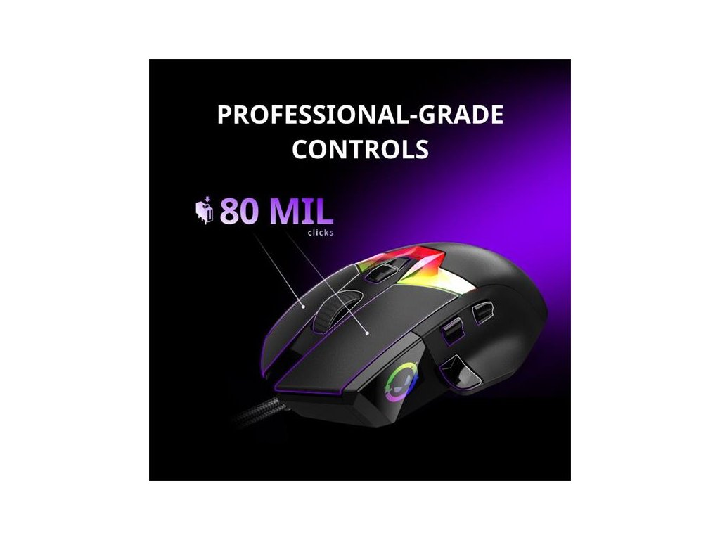 Lorgar MSP80, profi herná myš, 8 progr. tlač., senzor Pixart PAW3395, 26.000 DPI, režim podsv. RGB, čierna