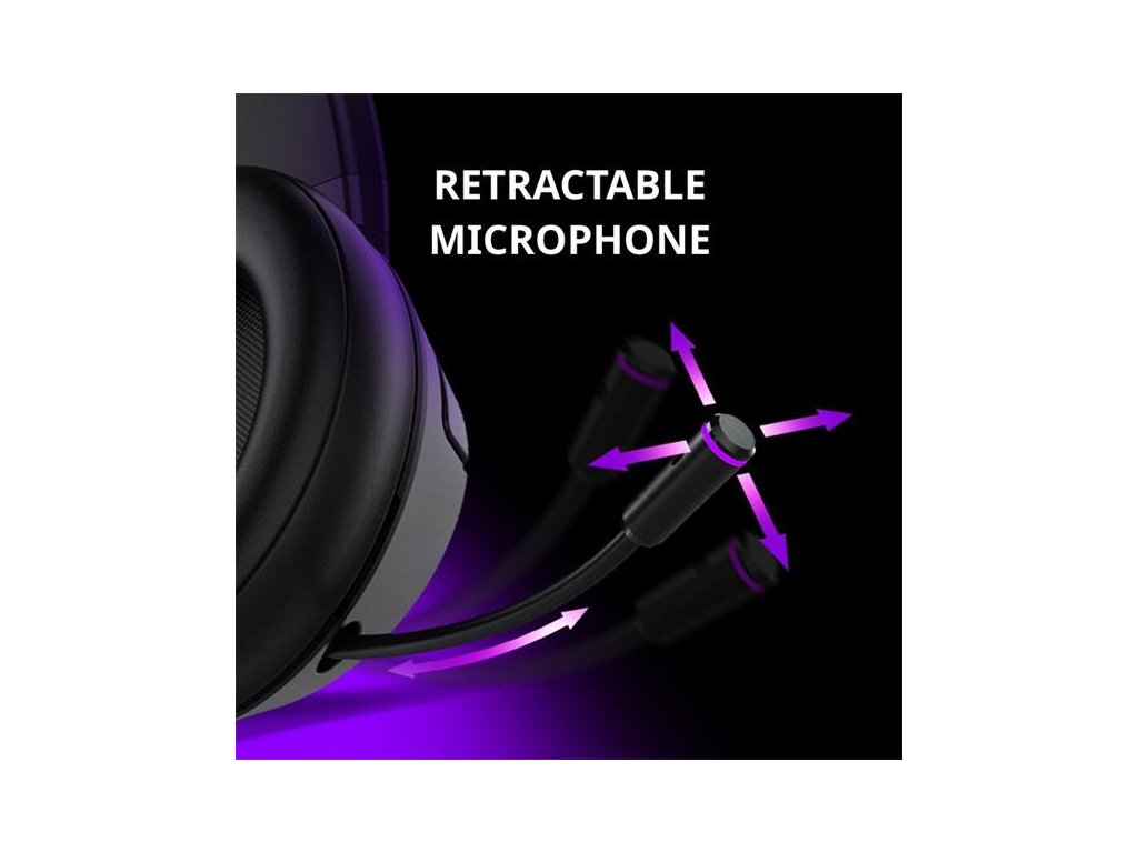 Keď nemáte náladu hovoriť, schovajte mikrofón späť do náhlavnej súpravy. Pohodlné vankúše umožňujú dlhé hranie bez nepohodlia a nastaviteľná veľkosť sa prispôsobí akémukoľvek tvaru hlavy. Náhlavná súprava je skladacia na bezpečné a pohodlné skladovanie. Jedinečné priedušné podsvietenie RGB dotvára celkovú estetiku. Nízka latencia náhlavnej súpravy zaručuje bezproblémový zážitok na akejkoľvek platforme, či už ide o smartfón, počítač alebo herné zariadenie.