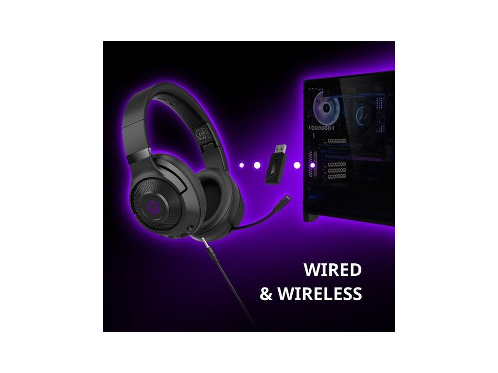 Vďaka vysokokapacitnej 1000 mAh batérii môžete hrať až 70 hodín po pripojení cez BT 5.3 alebo 2,4 GHz USB kľúč. A ak sa vám batéria vybije, nemusíte sa obávať; stačí použiť 3,5 mm káblový konektor.