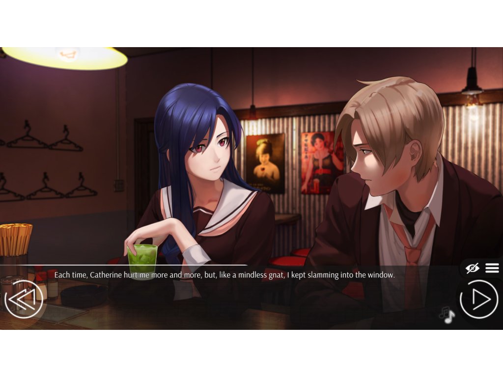 Catherine is Nikolai's ex-girlfriend who left japan about a year prior to the game's events. Their parting wasn't on the best terms, and Nikolai still harbours unpleasant memories of it. Perhaps he would have forgotten with time, but Catherine suddenly returns and, moreover, transfers to his class. Why is she back and does she love him still?