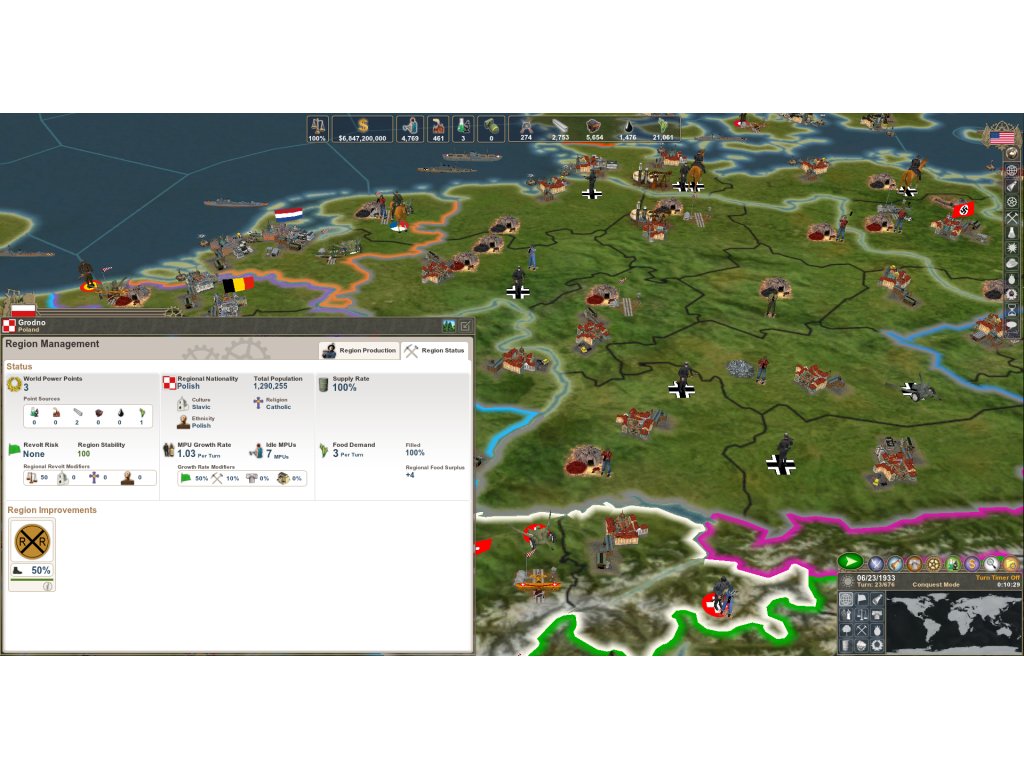 - Construct weapons factories, shipyards, research labs & a variety of other buildings that add specific abilities to your cities & regions