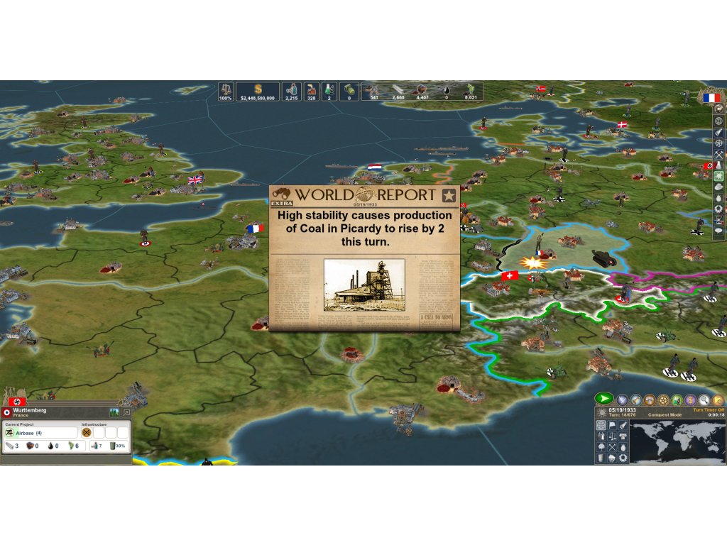 Prepare for the ultimate grand strategy experience. International trade, religious and cultural strife, military campaigns, diplomatic negotiations... here, you control it all. MAKING HISTORY II: The War of the World gives players the power to take full control of any world nation, colonies, regions, cities, and military units during the time leading up to and during the Second World War. Armchair generals and fans of grand strategy can take their turns building great empires or protecting the world from tyranny during these pivotal moments in world history.