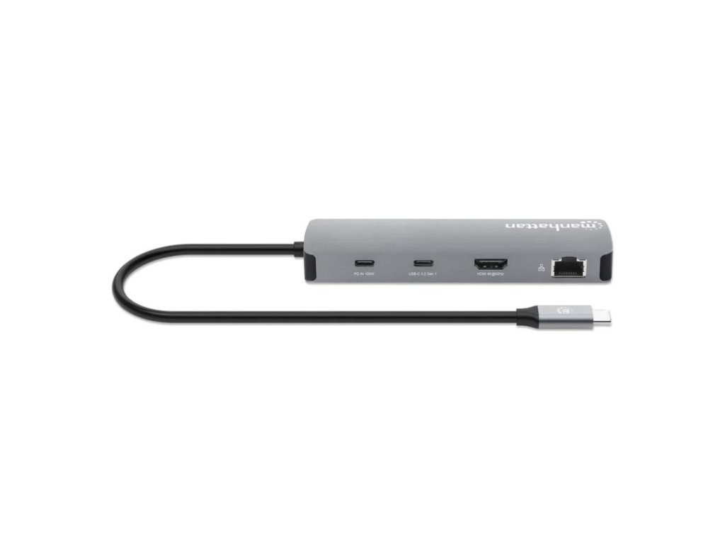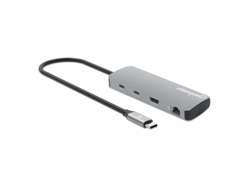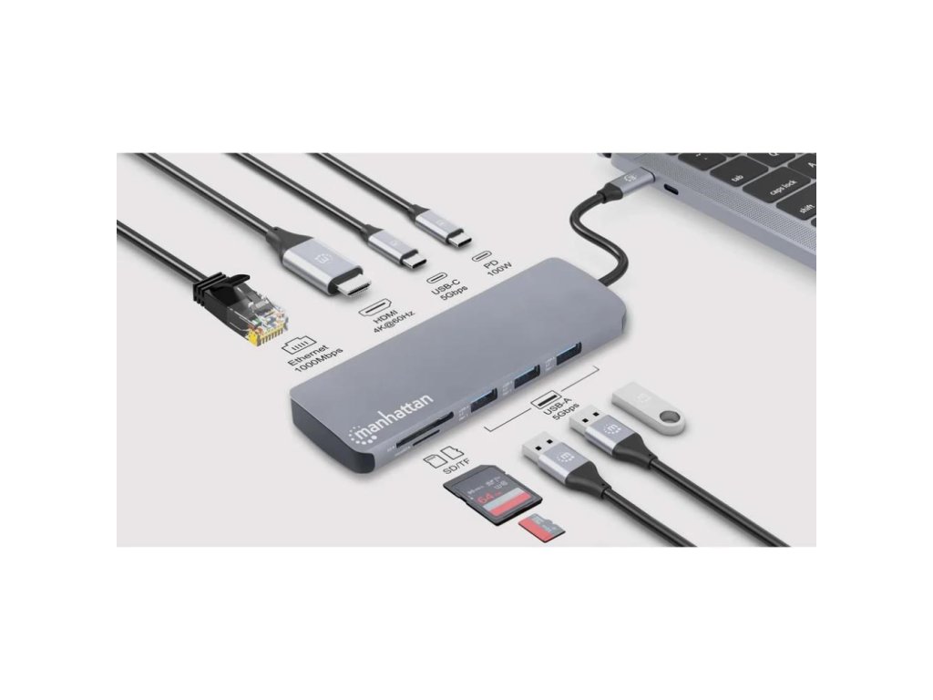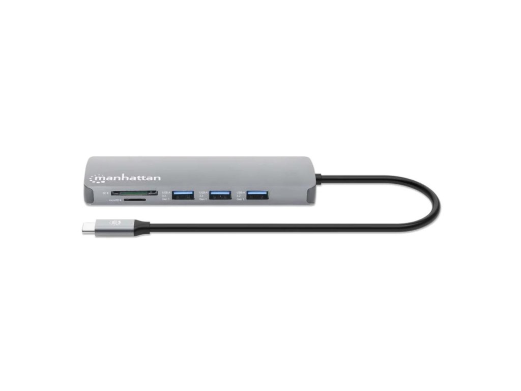 MANHATTAN Dokovací stanice USB-C 9v1, 1xHDMI, 2xUSB-C, 3xUSB, 1xRJ45, čtečka SD karet, šedá