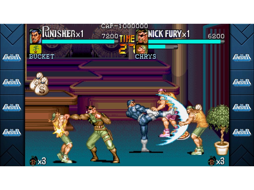 Dive into an action-packed lineup consisting of seven unique titles, including heavy hitters like X-MEN VS. STREET FIGHTER, and MARVEL vs. CAPCOM 2 New Age of Heroes. The collection also includes the rare beat 'em up game, THE PUNISHER.