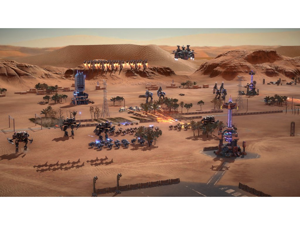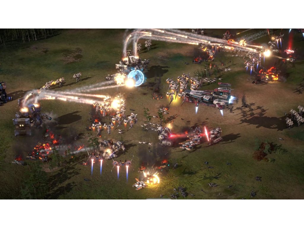 Turn a losing battle into a winning one by calling down the perfectly placed airstrike, or spread chaos by calling in a horde of crawler bots in the midst of your enemy’s army. Watch shrapnel, incendiary bombs and huge lasers cut through the air as battles between massive armies of mechs unfold in front of your eyes.