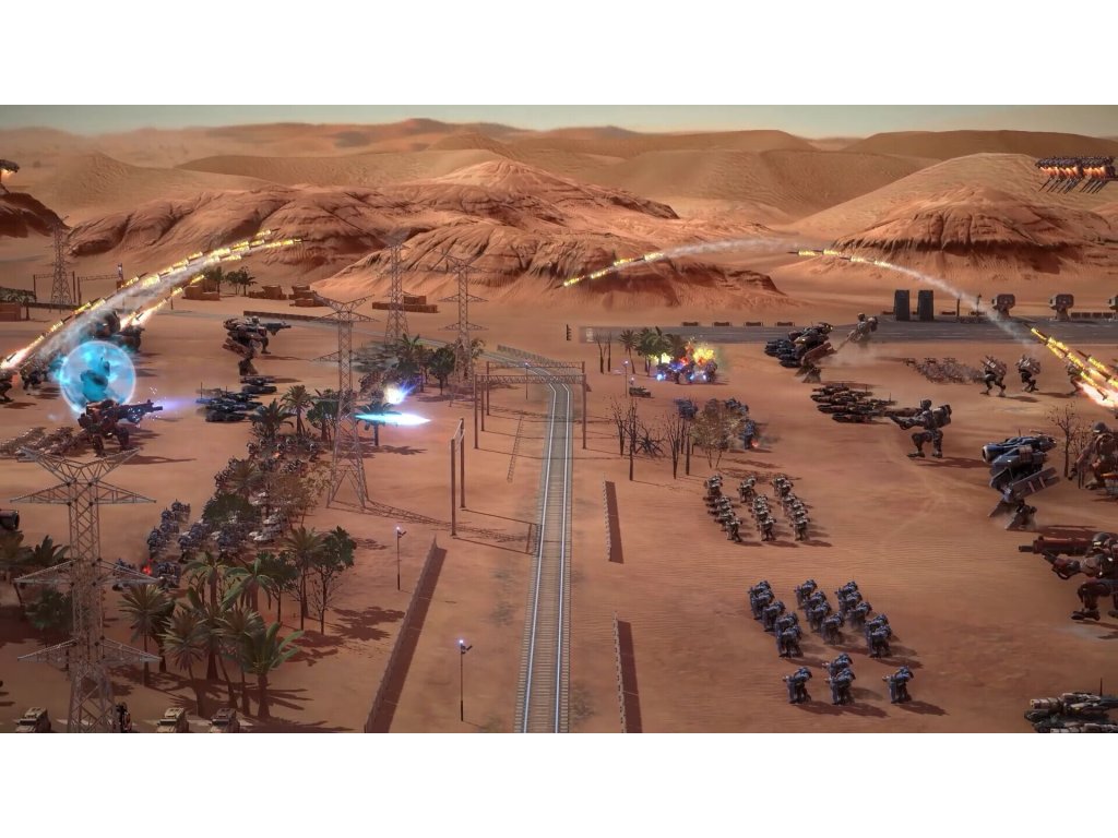 Turn a losing battle into a winning one by calling down the perfectly placed airstrike, or spread chaos by calling in a horde of crawler bots in the midst of your enemy’s army. Watch shrapnel, incendiary bombs and huge lasers cut through the air as battles between massive armies of mechs unfold in front of your eyes.