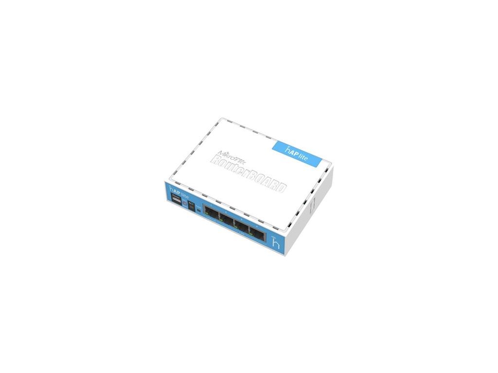 Systémové řešení platforem firmy MikroTik pro poskytovatele bezdrátového připojení k síti Internet. hAP je AP pro domácí použití disponující kompletním servisem RouterOS funkcí, umožňující napájení z USB portu (zdroj 5V součástí dodávky). Osazeno 650MHz CPU, 32MB RAM, disponuje čtyřmi Fast Ethernet porty, integrovaný Dual-Chain 2.4GHz bezdrátový modul a RouterOS L4 licence. Podporuje "button triggered WPS" pro snažší autentifikaci, tlačítkový shift do cAP módu s CAPsMAN centrálním managementem. Samozřejmostí jsou pokročilé funkce typu bandwidth shaping, firewall, user access control atp. Parametr Hodnota LAN 4x 10/100 Mbit/s MiniPCI - SFP slot - SFP+ slot - Integrovaný WLAN ano USB ano (pouze pro napájení) Paměťová karta - Sériový port (RS-232) - Bezdrátové normy 802.11b/g/n VF konektory - Tx power 22 dBm Zisk integrované antény 1.5 dBi PoE - Napájecí konektor USB (5V) LCD displej - Rozměry 113 x 89 x 28 mm CPU 650 MHz (QCA9531) Architektura mipsbe RAM 32 MB Provozní teplota -20° až +70°C RouterOS Licence level 4 Operační systém RouterOS Výchozí jméno / heslo admin / (bez hesla) Příslušenství napájecí zdrojDodatočné parametre