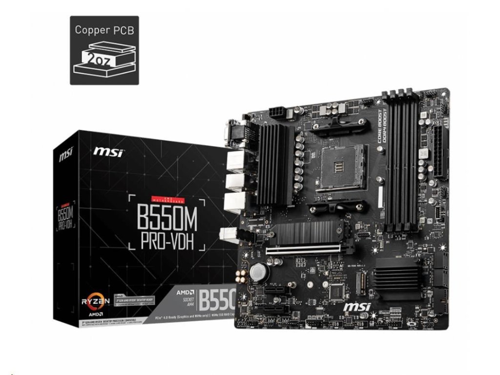 MSI MB Sc AM4 B550M PRO-VDH, AMD B550, 4xDDR4, 1xDP, 1xHDMI, 1xVGA, mATX