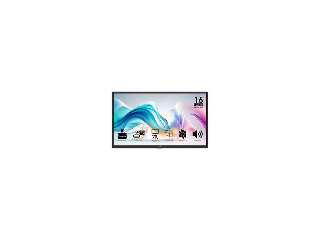 MSI přenosný ultra tenký monitor PRO MP165 E6, 15,6" IPS/1920 x 1080 FHD/60Hz/4ms/2xUSB-C/HDMI/černá