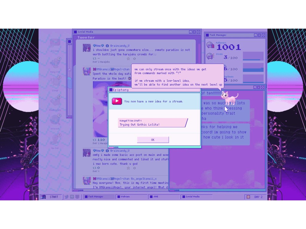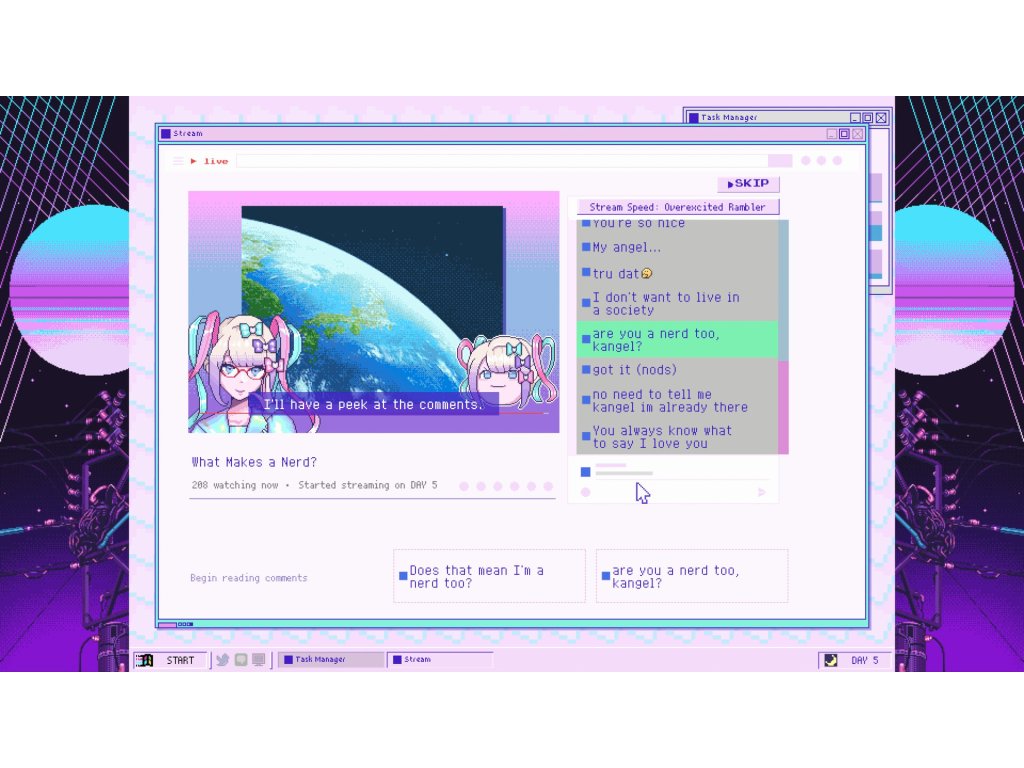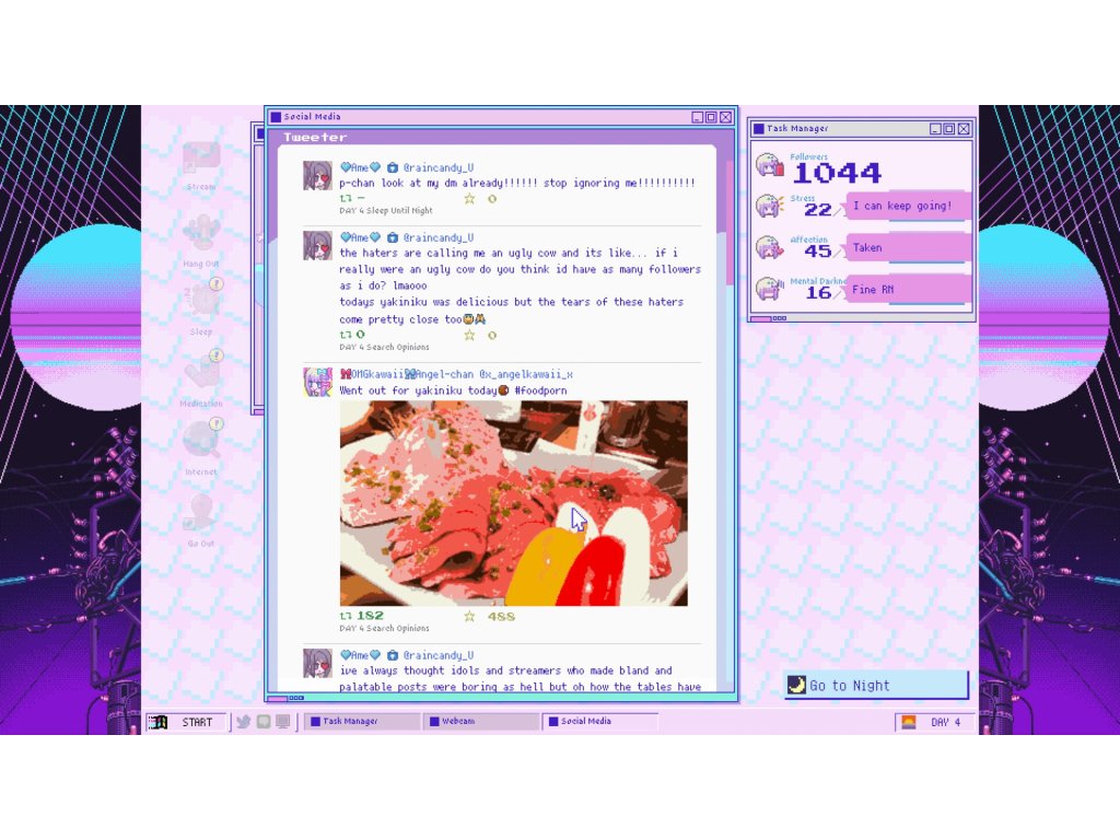 - The game features multiple endings! Your streamer will do things like become weird and emo for various reasons, subject her trusty P-chan to harm, and generally get messed up in the head. Begin your adventure and see for yourself whether a happy ending is really even possible for a cute yet disturbed girl on the modern-day internet.