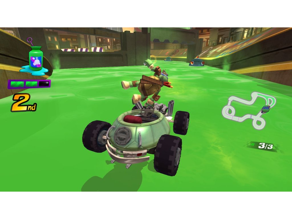 Hit the road with racers from some of your favorite Nickelodeon series in a variety of Slime-filled tracks in the ultimate race to win cups and upgrades for your Kart! There's no slowing down there -- shift to the next gear and challenge your friends in split-screen racing and battle modes!