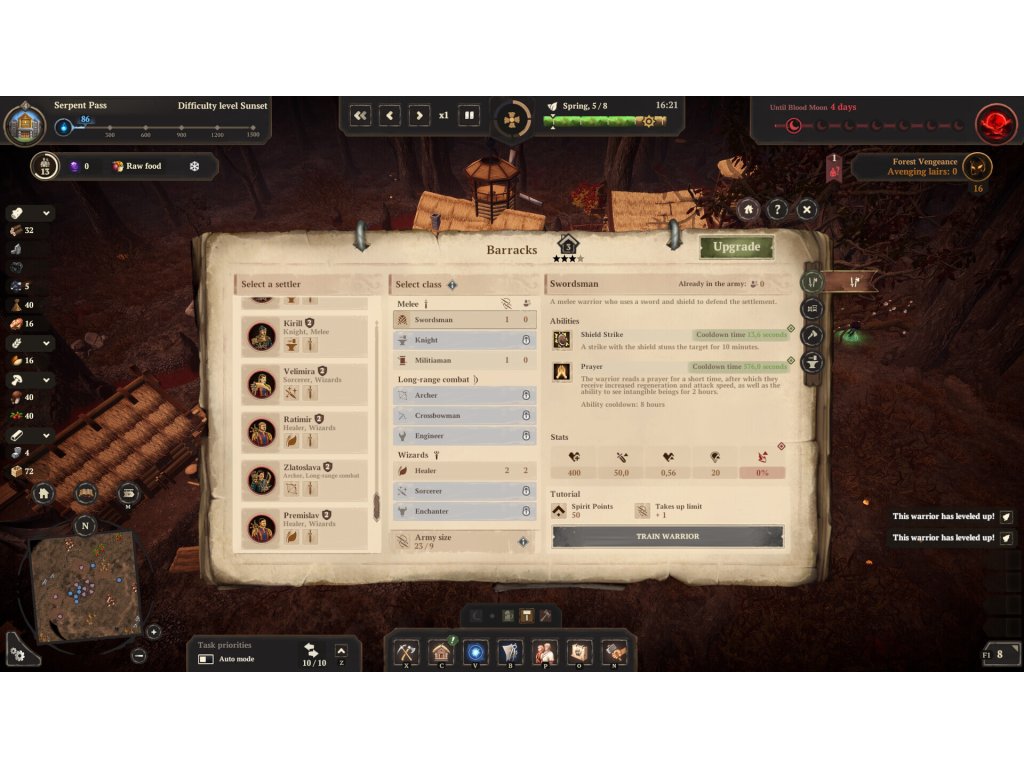 Each settler is an individual with their own attributes, needs, skills, and strengths. Govern them wisely and guide their talents towards the settlement improvement. Settlers' morale will impact their resilience and determine their capability to overcome life struggles and challenges.