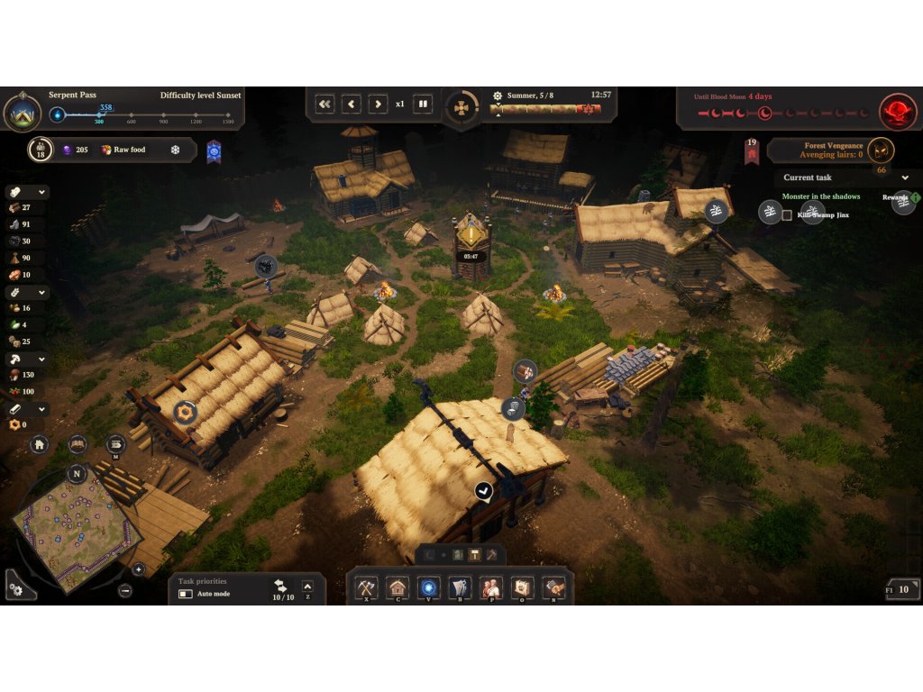 The Darkness is relentlessly devouring the lands, forcing survivors to hide in the woods, where each new day is a battle against death. You are to lead a group of those humbled by impending dread: build and develop your settlement, gather resources, and protect your people from monsters that lurk in the dark.