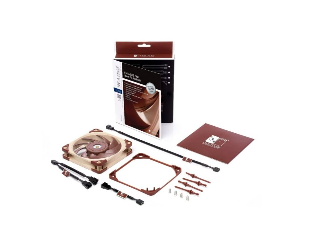 Po získaní viac ako 100 ocenení a odporúčaní od medzinárodných hardvérových webov a časopisov sa vlajková loď spoločnosti Noctua NF-A12x25 stala skutočnou luxusnou voľbou, pokiaľ ide o tiché 120 mm ventilátory prémiovej kvality. Rôzne najmodernejšie technológie a rekordne malá vzdialenosť špičky iba 0,5 mm, ktorú umožňuje použitie nového polyméru s tekutými kryštálmi Sterrox®, umožňujú dosiahnuť vynikajúce výsledky pri všetkých druhoch použitia: či už je to v aplikáciách orientovaných na prúdenie vzduchu s nízkou impedanciou, ako je chladenie skriniek, alebo vysokoimpedančné tlakovo náročné scenáre, ako sú chladiče a radiátory chladiace vodou, je NF-A12x25 osvedčeným víťazom. 4-pin verzia LS-PWM je nízkorýchlostný variant s povoleným PWM, ktorý je ideálny pre semi-pasívne zostavy, alebo aplikácie s mimoriadne nízkym šumom, ktoré vyžadujú takmer nehlučnú akustiku a riadenie rýchlosti na základe PWM. Model NF-A12x25 doplnený mimoriadnou plynulosťou chodu, ložiskom Noctua referenčnej triedy SSO2, bohatým balíkom príslušenstva a 6-ročnou zárukou výrobcu je produktom prémiovej kvality. Jeho vynikajúca účinnosť, špičková konštrukcia a priekopnícke materiály z neho robia elitnú voľbu pre tie najnáročnejšie požiadavky.Technické vlastnosti: