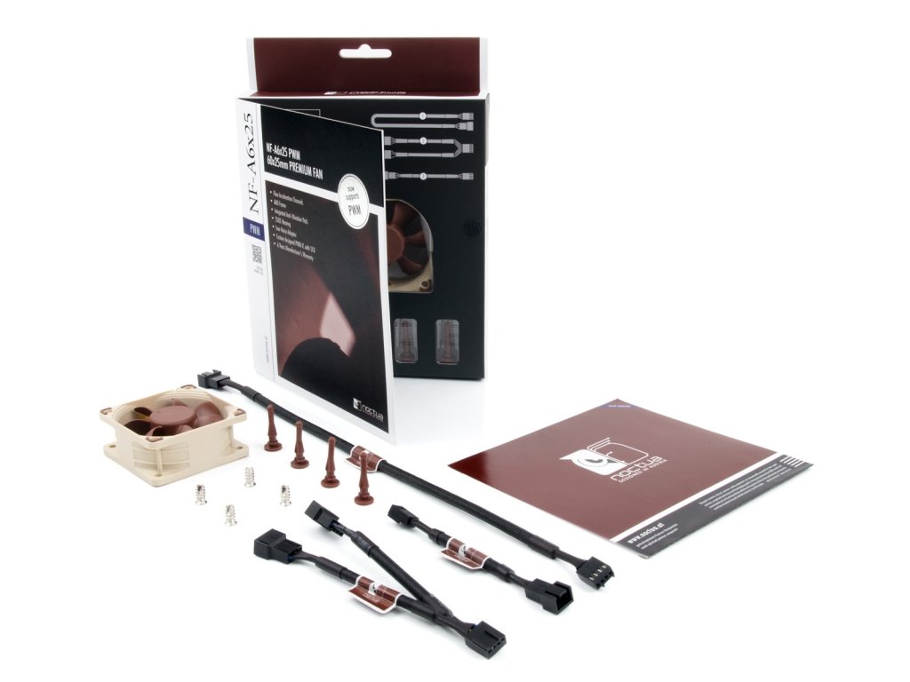 Noctua NF-A6x25 PWM je PWM verziou 60 mm ventilátora od spoločnosti NOCTUA. Okrem už známych technológii z posledných modelov ventilátorov prináša v 60mm segmente hlavne veľmi vysokú spoľahlivosť (150 000 hodín), výdrž a záruku. Menší priemer strednej časti rotora oproti bežným modelom prináša lepší prietok a tlak vzduchu pri zachovaní tichého chodu.Nové technológie: Stepped Inlet Design, Inner Surface Microstructures, SSO2 Bearing, Flow Acceleration Channels, Reduced Motor Hub Size, Smooth Commutation Drive ( hladký komutačný pohon) 2