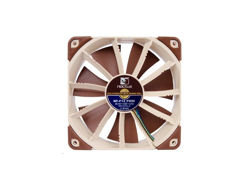 Noctua NF-F12 PWM je novým PWM ventilátorom od spoločnosti NOCTUA, ktorého vývoj trval celé 2 roky. Prináša niekoľko nových technológií. Spojenie jedenástich lopatiek statora spolu s špeciálne koncipovaným sedem lopatkovým rotorom a NF-F12 Focused Flow ™ systémom vytvára vynikajúci statický tlak a sústredí prúd vzduchu pre vynikajúci výkon na pasívy chladičov a radiátory vodného chladenia. Celá rada pokročilých aerodynamických konštrukčných opatrení, druhá generácia SSO ložísk a nové Noctua PWM IC, navrhnuté na objednávku pre plne automatické riadenie zaručujú ohromujúcu, tichú prevádzku. Ventilátor NF-F12 je vybavený modulárnou kabelážou, integrovanými a odoberateľnými anti-vibračnými podložkami a dvomi možnosťami nastavenia rýchlosti pre plnú flexibilitu. Jej výborný výkon, vyčerpávajúca sada funkcií a rokmi overená a dôveryhodná prvotriedna kvalita ju predurčujú pre použitie na vzduchové chladiče, radiátory a ďalšie na tlak náročné aplikácie.Novými technológiami, ktoré neboli použité v predchádzajúcich modeloch sú: Focused Flow™ System, Stepped Inlet Design, Inner Surface Microstructures, SSO2 Bearing, NE-FD1 PWM IC