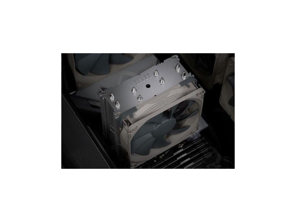 Balenie: chladič, ventilátor Noctua NF-P12 Redux 1700 PWM, predaplikovaná teplovodivá pasta NT-H1, montážny kit Secu-Firm2, 4x NA-AVP1 sivé antivibračné podložky, pár ventilátorových spôn pre druhý ventilátor, kovové Noctua logo.