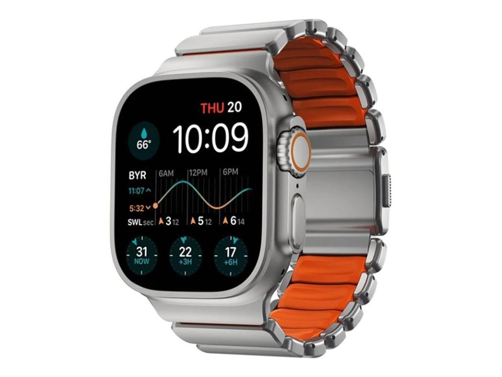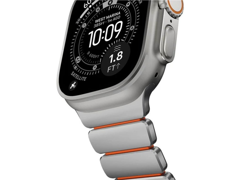 Remienok pre hodinky Apple Watch - elegantný remienok vyrobený z odolného titánu triedy 4 s flexibilitou FKM kaučuku - DLC povrch s vysokou odolnosťou proti poškriabaniu - bezpečné magnetické zapínanie - zachováva celodenné pohodlie s dlhou životnosťou - magnety triedy N52 - odolné voči vode, vhodné na plávanie aj každodenný styk s vodou - nastaviteľný remienok vhodný pre obvod zápästia 130-200 mm - určené pre Apple Watch 44 - 49 mmDodatočné parametre