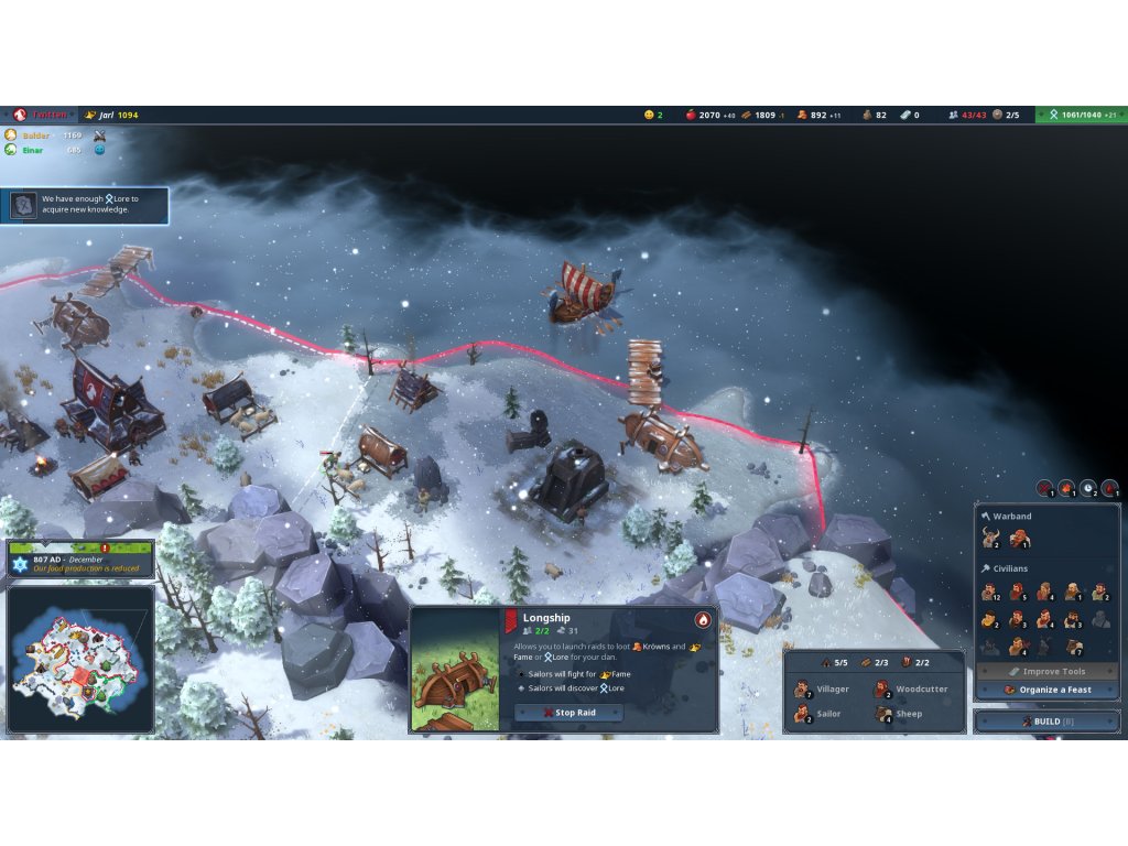 - Assign your vikings to various jobs (Farmer, Warrior, Sailor, Loremaster...)