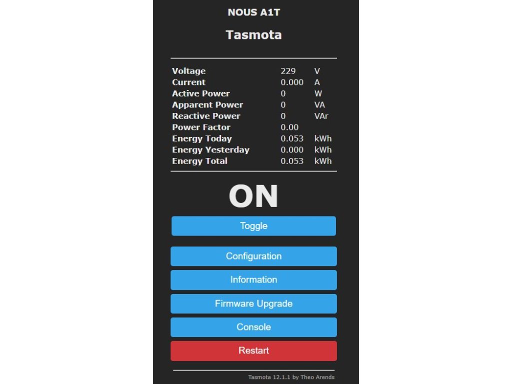 5. Zásuvku bude v tomto stave možné ovládať cez webové rozhranie na jeho IP adrese, avšak na plné využitie je potrebné napojenie na nejaký systém domácej automatizácie (napr. Home Assistant)