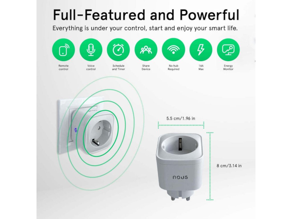 Domáce pohodlie pod kontrolou technológie - Inteligentná zásuvka Nous A1 vám umožňuje vytvárať plány pre pripojenú elektroniku na základe vašich každodenných rutín. Zapínanie a vypínanie zariadení v naplánovanom čase môže tiež ušetriť energiu a čas. Zobuďte sa horúcou kávou alebo si naplánujte zapnutie zvlhčovača pomocou inteligentnej zástrčky. Veľa pohodlia pre vás a vašu rodinu