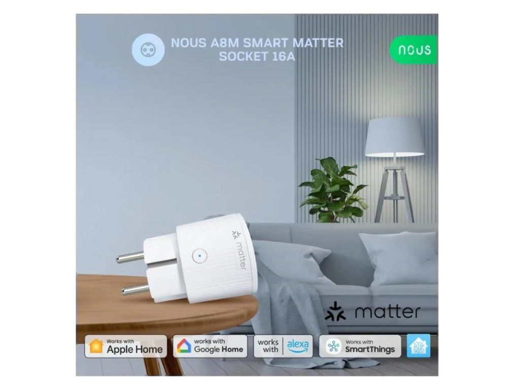 Ak hľadáte inteligentné domáce zariadenia, ktoré vám uľahčia a spríjemnia život, mali by ste sa pozrieť na Nous A8M Matter Smart Socket 16A (WiFi). Táto inteligentná zásuvka je všestranné a výkonné zariadenie, ktoré vám umožní ovládať a monitorovať vaše elektrické spotrebiče odkiaľkoľvek pomocou smartfónu alebo hlasového asistenta. Lampu, kávovar, ventilátor, ohrievač alebo akékoľvek iné zariadenie, ktoré sa zapája do elektrickej zásuvky, môžete zapnúť/vypnúť jednoduchým klepnutím alebo hlasovým príkazom. Môžete tiež nastaviť plány a časovače na automatizáciu vašich zariadení podľa vašej každodennej rutiny alebo preferencií.
