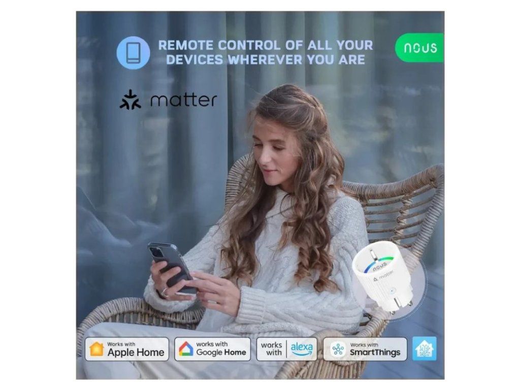 Inteligentná zásuvka Nous A8M Matter 16A (WiFi) je viac než len inteligentná zásuvka. Ide o inteligentný doplnok do domácnosti, ktorý dokáže premeniť vaše bežné elektrospotrebiče na inteligentné. Ide o inteligentné zariadenie pre domácnosť, ktoré vám môže pomôcť ušetriť energiu, peniaze a čas a zároveň zlepšiť vaše pohodlie a bezpečnosť. Môže tiež chrániť vaše zariadenia pred prepätím a chrániť váš dom pred potenciálnym požiarom, pretože je vyrobený z ohňovzdorných materiálov.
