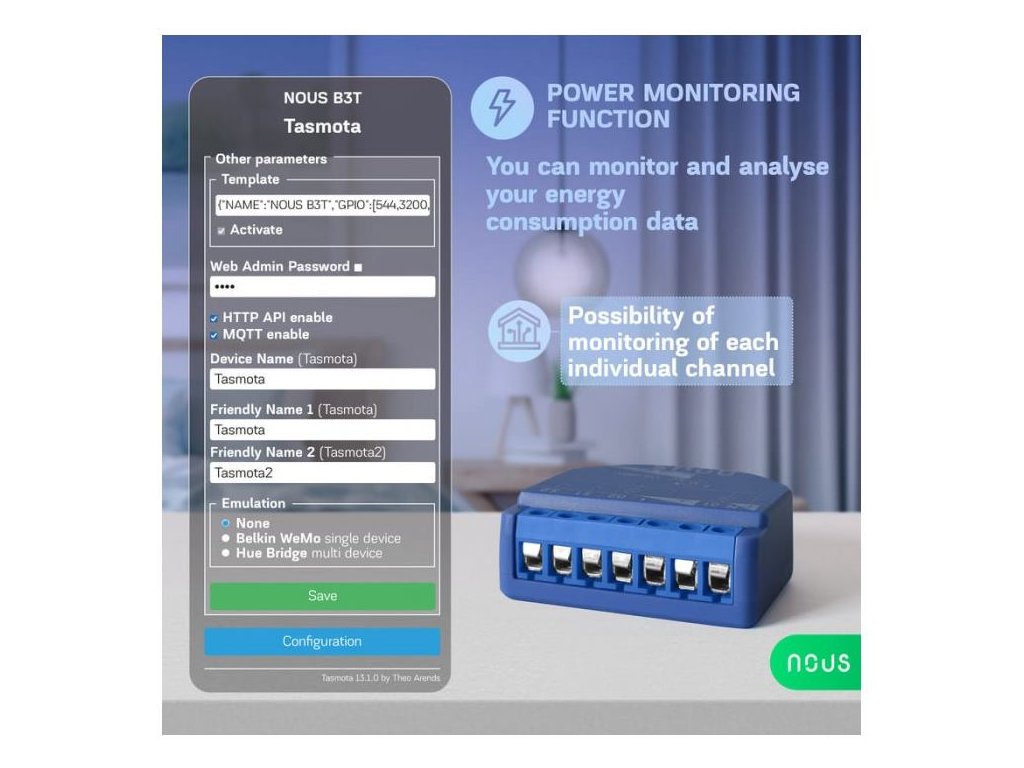NOUS B3T, Tasmota SMART Switch, prepínač (s mera)