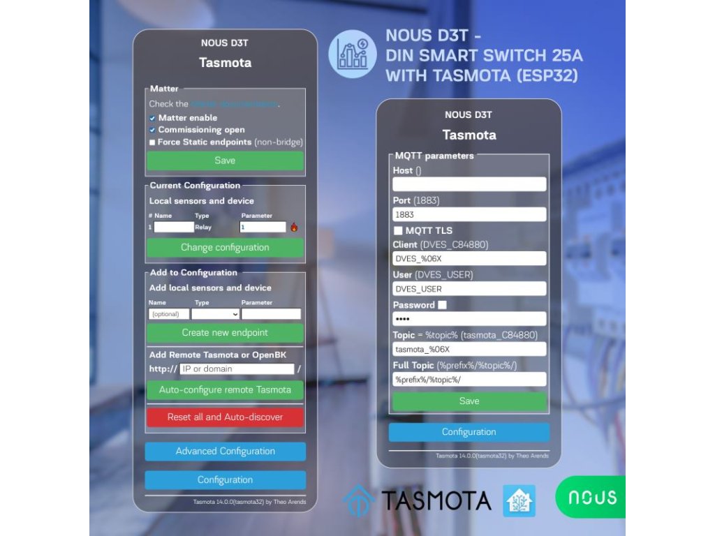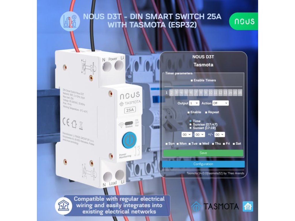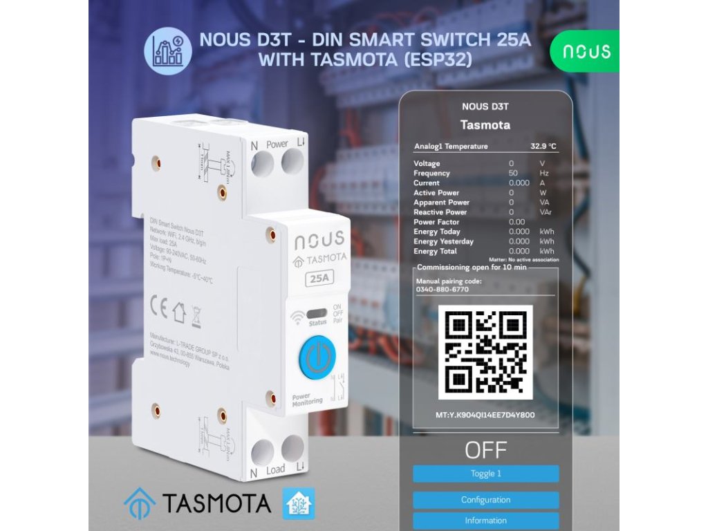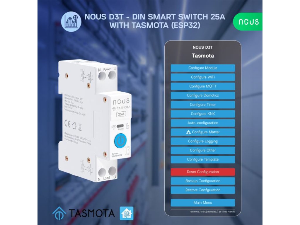 NOUS D3T, Tasmota DIN SMART Switch, prepínač