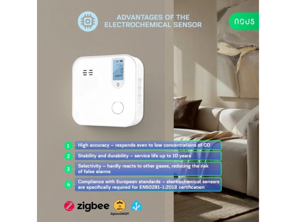 NOUS E12 Tuya/ZigBee, Detektor Oxidu uhoľnatého