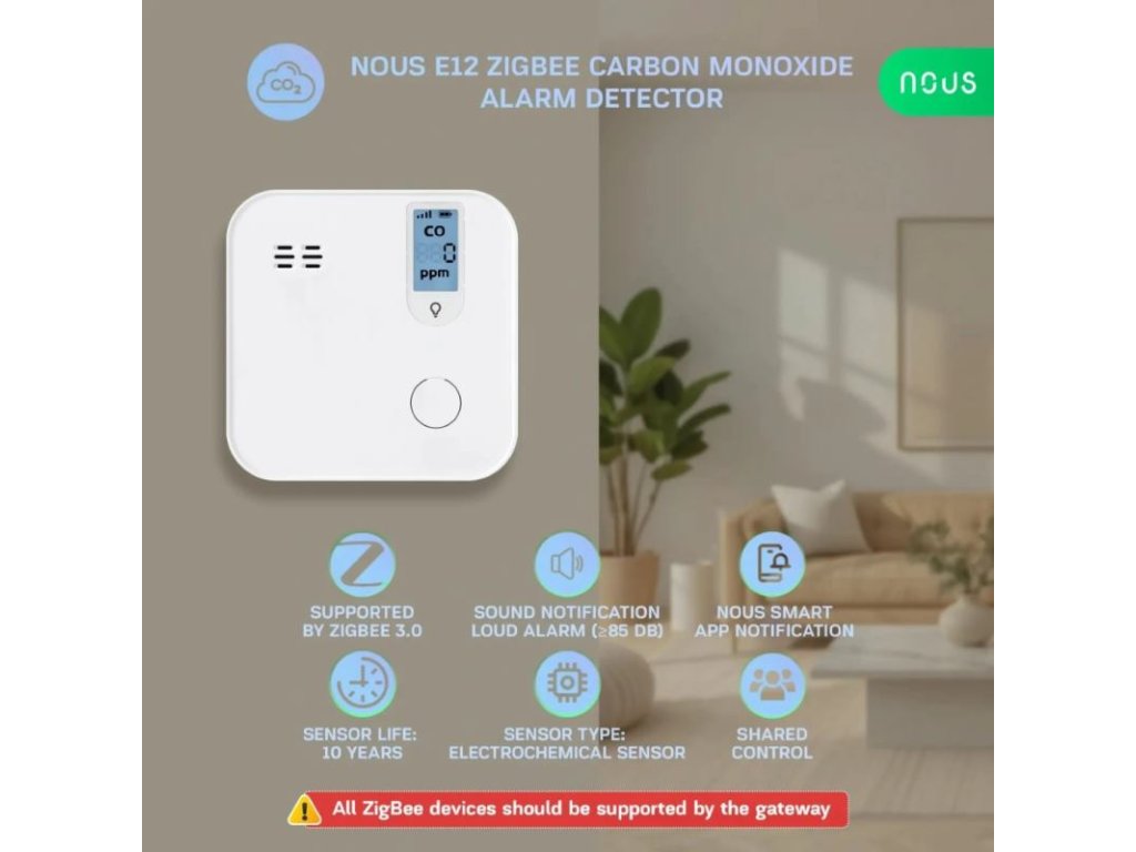 Nous E12 Zigbee detektor oxidu uhoľnatého je nevyhnutným doplnkom pre každú modernú domácnosť, ktorý vám poskytne pokoj a istotu vďaka spoľahlivej ochrane pred neviditeľným nebezpečenstvom.