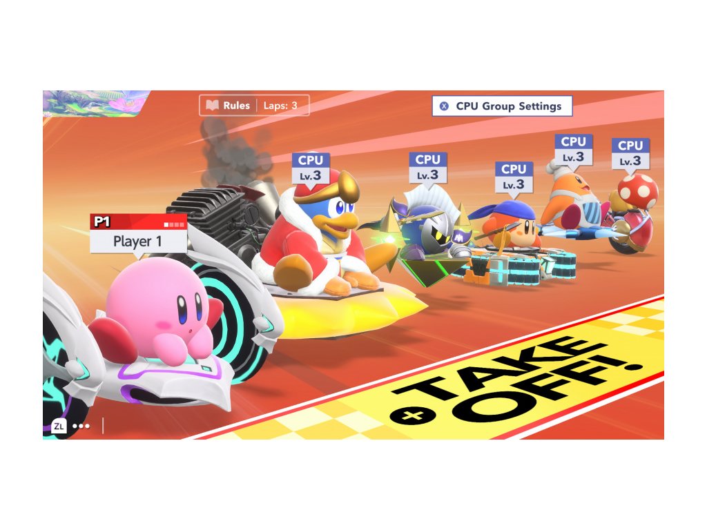 Na výber bude celý rad jazdcov: Kirby, Meta Knight, King Dedede a Magolor z Kirby's Adventure Wii. Zo strojov dostanete na výber napríklad z nasledujúcich: Warp Star, Wheelie Bike, Chariot a mnoho ďalších. Každé vozidlo sa ovláda inak a každý jazdec má svoje vlastné štatistiky a špeciálne schopnosti - môžu tiež preberať Copy Abilities svojich nepriateľov, čo im zaistí výhodu v boji.