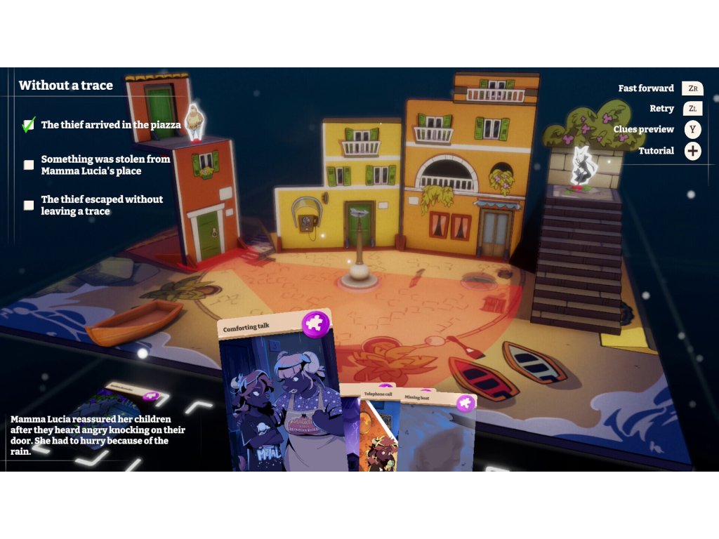 Welcome to Borgo Marina, the perfect summer haven where sun-soaked days and sparkling nights promise the perfect getaway. You are Diana, an amateur writer looking for inspiration after the rejection of her most recent piece. But beware— an enigmatic thief is causing trouble, and it’s up to you to crack the case!