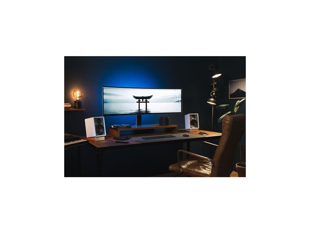 V balení: 2x Reproduktor, AC adaptér, diaľkové ovládanie (2x AAA bateéria), 2 m reproduktorový kábel, 1,5 m HDMI kábel, 1,5 m USB-C na USB-A kábel, 2x stojan