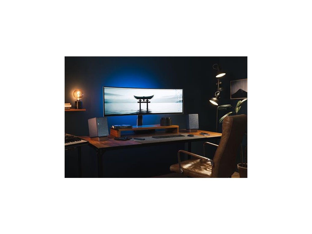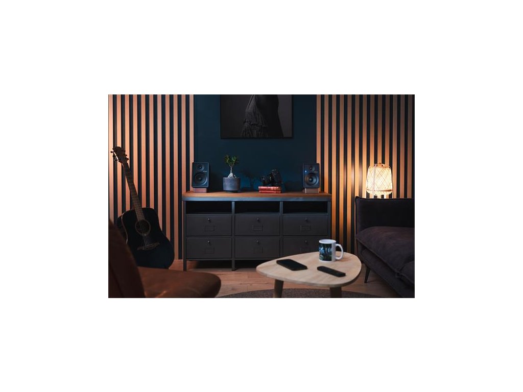 V balení: 2x Reproduktor, AC adaptér, diaľkové ovládanie (2x AAA bateéria), 2 m reproduktorový kábel, 1,5 m HDMI kábel, 1,5 m USB-C na USB-A kábel, 2x stojan