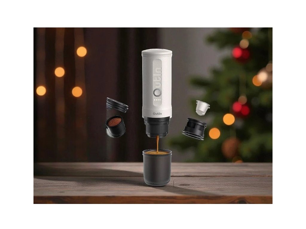 Vianočný setPrenosný espresso kávovar Outin Nano (perleťovo biela) + Basket Plus sada