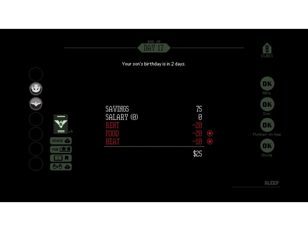 Moreover, you need to work hard in order to maintain your family, including your wife, your son, your uncle, and your mother-in-law. Every working day ends with a sum up of your earnings and your bills. You need to be payable to keep your family members healthy. Of course, you can always decide to accept a bribe and increase your income this way, but you must watch out not to get caught by the Ministry of Admission, or they will fine you for violating the immigration protocol.