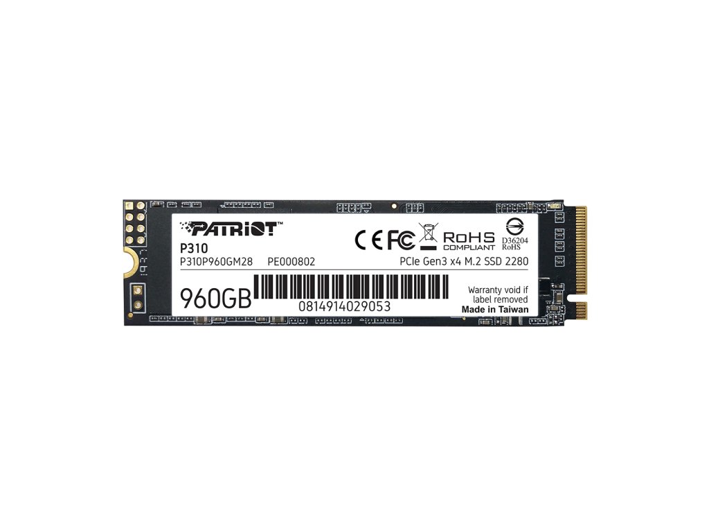 Patriot P310 960GB M.2 2280 PCIe Gen3 x 4 Solid State Drive Postaveno s nejnovějšími PCIe m.2 Gen3x 4, NVMe 1.3, Jednotka SSD nabízí o 25 % vyšší přenosové rychlosti a vstupně-výstupní operace než standardní PCie 3x 2 řešení. P310 m.2 SSD poskytuje skvělé zlepšení doby spouštění, načítání a přenosu než tradiční pevné disky. Pokročilý firmware P310 nabízí Technologie SmartECC, tepelné škrcení a end-to-end data path protection slouží pro zajištění integrity, trvanlivosti a spolehlivosti dat pro každodenní úkoly. Díky kompaktnímu provedení m.2 a P310 SSD navržený pro snadnou instalaci přesně zapadne do všech PC nebo notebooků, zatímco jeho nízká spotřeba energie pomáhá prodloužit výdrž baterie. Zvyšte výkon svého počítače pomocí P310 SSD zažijte rychlé načítání aplikací a lepší celkový výsledek chodu počítače! Kompatibilní operační systémy podporované Windows® 7 * / 8.0 * / 8.1 / 10 * . Na výrobek je 3 roky záruka. Parametry: • Vyrobeno s nejnovějším řadičem PCIe 3 x 4 • 2280 M.2 PCIe Gen3 x 4, NVMe 1.3 • Komplexní ochrana datových cest • Technologie SmartECC • Technologie tepelného škrcení • Provozní teplota: 0 ~ 70°C • Spotřeba energie: Plná: 2,38 W při nečinnosti: 0,38 W • TBW: 480 TB • Náhodné čtení 4K: až 280K IOPs • 4K zarovnaný náhodný zápis: až 250K IOPs • Sekvenční čtení (ATTO): až 2 100 MB/s • Sekvenční zápis (ATTO): až 1 800 MB/s • Sekvenční čtení (CDM): až 2 100 MB/s • Sekvenční zápis (CDM): až 1 800 MB/s • Podporované operační systémy: Windows® 7 */8.0*/8.1/10 • Kapacita 960GB *Může vyžadovat driveryDodatočné parametre